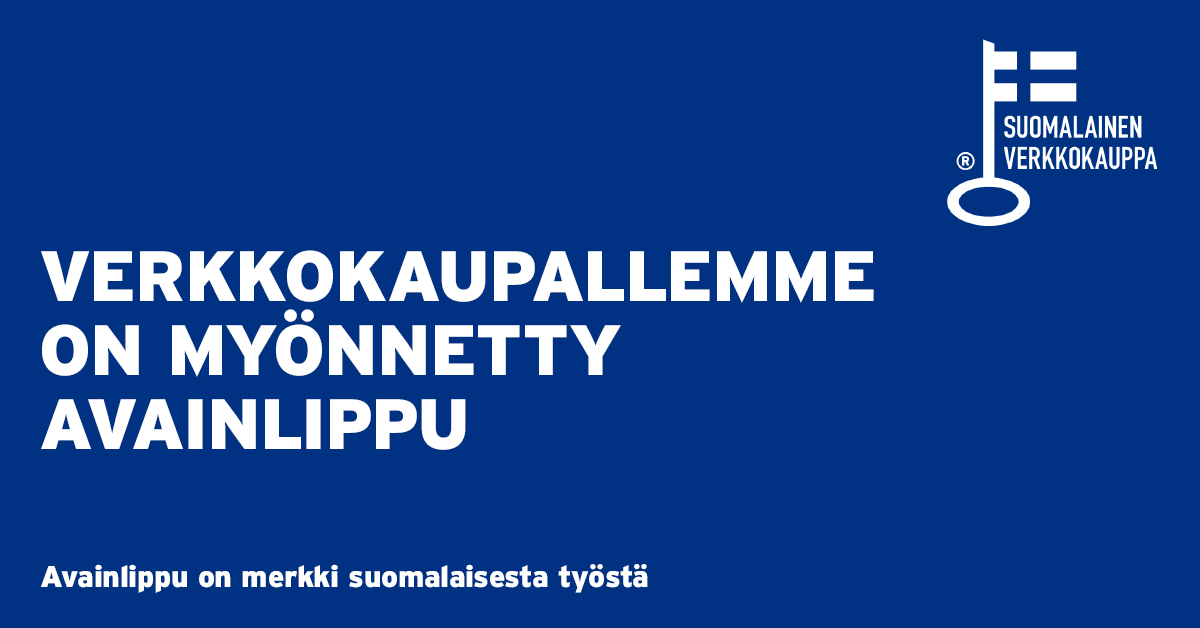 Me voimmekin nykyään ylpeänä kertoa, että me täytämme nuo ehdot ja olemme saaneet hyväksynnän Avainlipun käytölle verkkokaupassamme. Avainlippua käyttämällä voimme tuoda asiakkaille näkyväksi sen, että teemme työtä suurella palolla, jotta saamme pidettyä asiakkaillemme kotimaisen vaihtoehdon verkkokauppojen laajassa viidakossa.